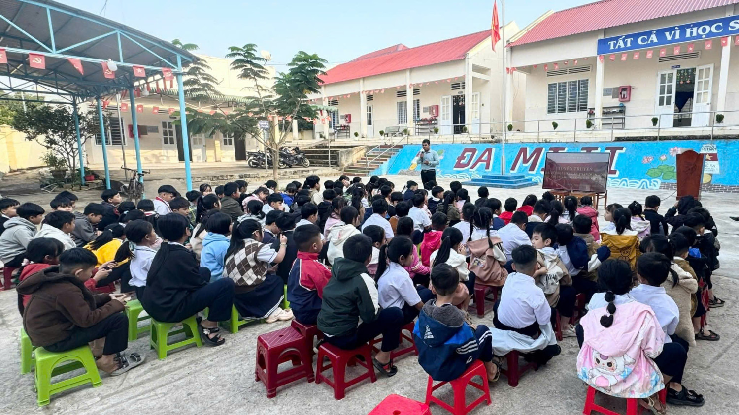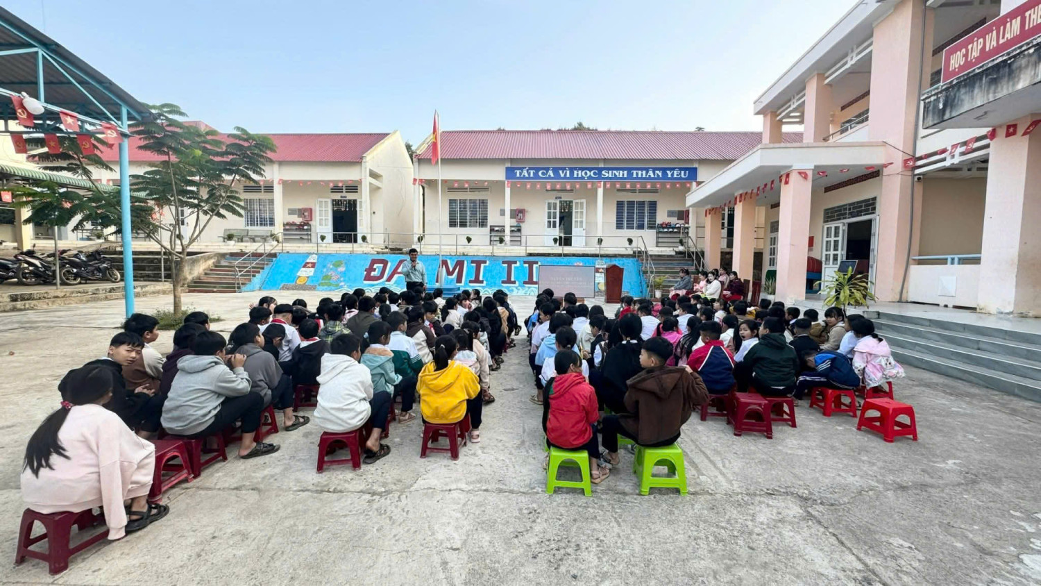 TRƯỜNG TIỂU HỌC ĐA MI 2, XÃ LA DẠ, TỈNH LÂM ĐỒNG TỔ CHỨC TUYÊN TRUYỀN AN TOÀN GIAO THÔNG, PHÒNG CHÁY CHỮA CHÁY VÀ PHÒNG, CHỐNG BẠO LỰC HỌC ĐƯỜNG, MA TÚY, PHÁO NỔ