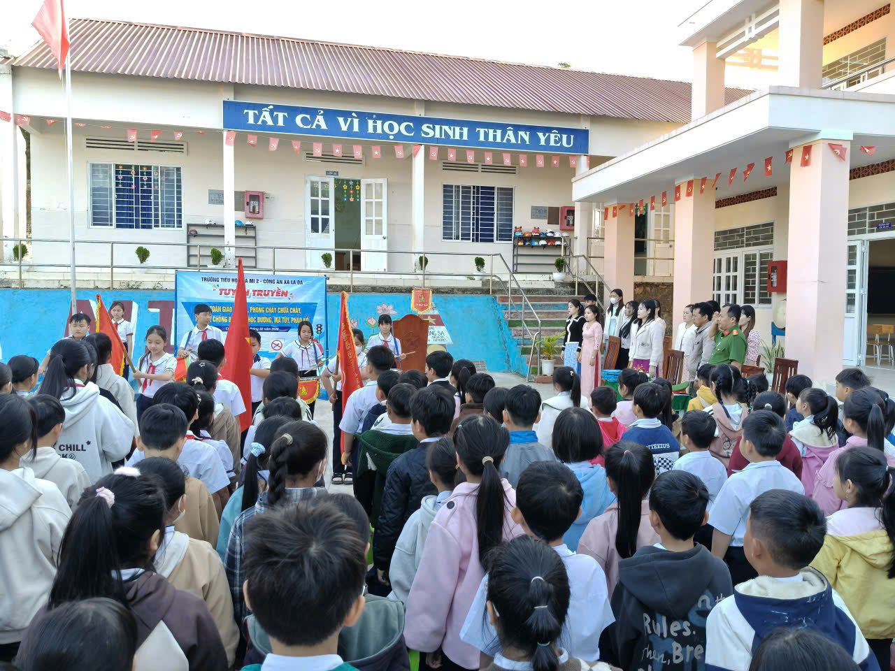 TRƯỜNG TIỂU HỌC ĐA MI 2, XÃ LA DẠ, TỈNH LÂM ĐỒNG TỔ CHỨC TUYÊN TRUYỀN AN TOÀN GIAO THÔNG, PHÒNG CHÁY CHỮA CHÁY VÀ PHÒNG, CHỐNG BẠO LỰC HỌC ĐƯỜNG, MA TÚY, PHÁO NỔ