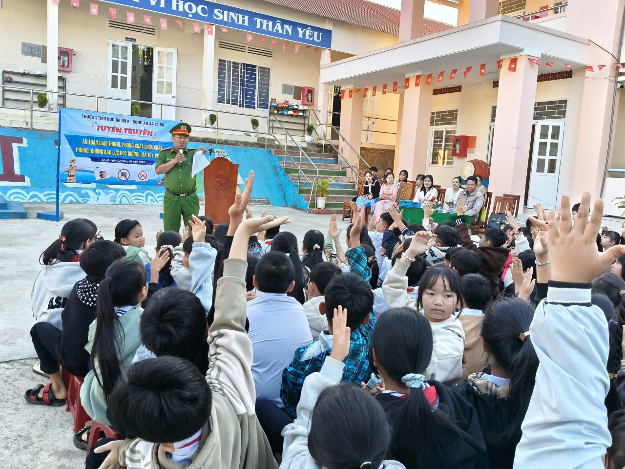 Hoạt động tuyên truyền tiếp tục khẳng định sự phối hợp chặt chẽ giữa nhà trường và lực lượng Công an địa phương, thể hiện sự quan tâm của Trường Tiểu học Đa Mi 2 trong công tác giáo dục, chăm sóc và bảo vệ học sinh, hướng tới mục tiêu xây dựng trường học an toàn – thân thiện – hạnh phúc.